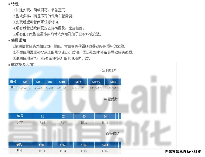 YPLL6-M5,YPLL6-01,YPLL6-02,STNC加長螺紋管接頭
