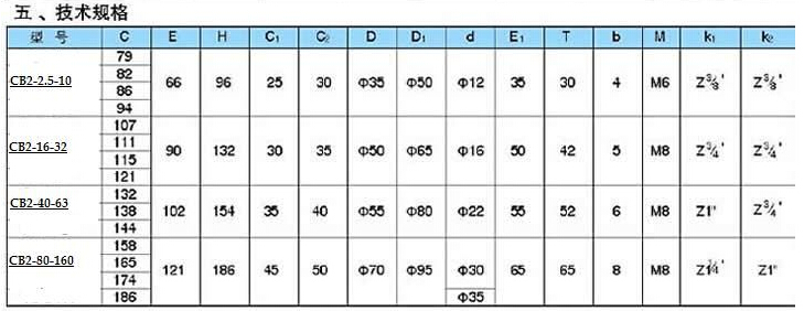 CB2-2.5,CB2-4,CB2-6,CB2-10,CB2-16,CB2-20,CB2-25,CB2-32,CB2-40,CB2-50,CB2-63,CB2-80,CB2-100,CB2-125,CB2-160齒輪泵