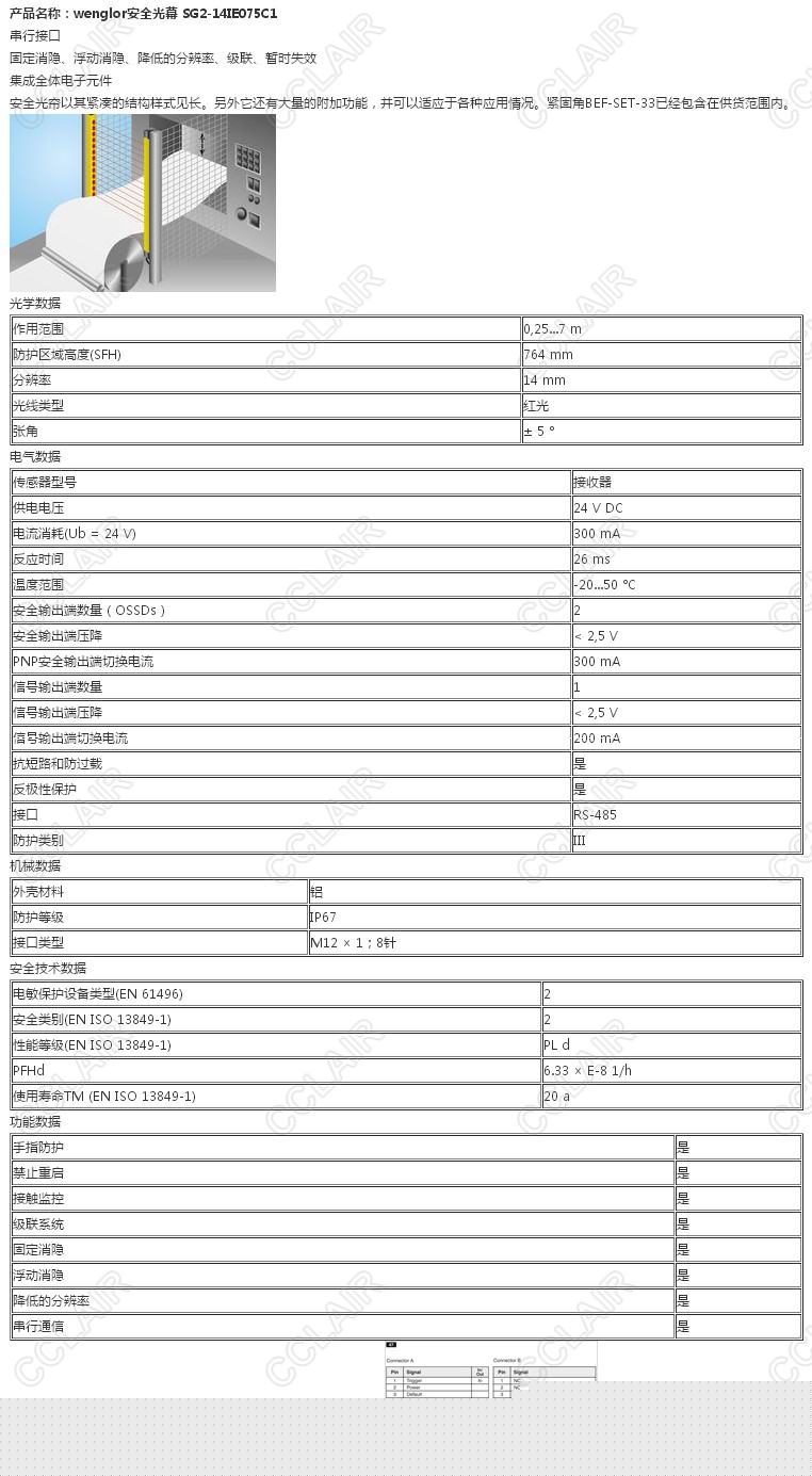 SG2-14IE075C1,wenglor安全光幕
