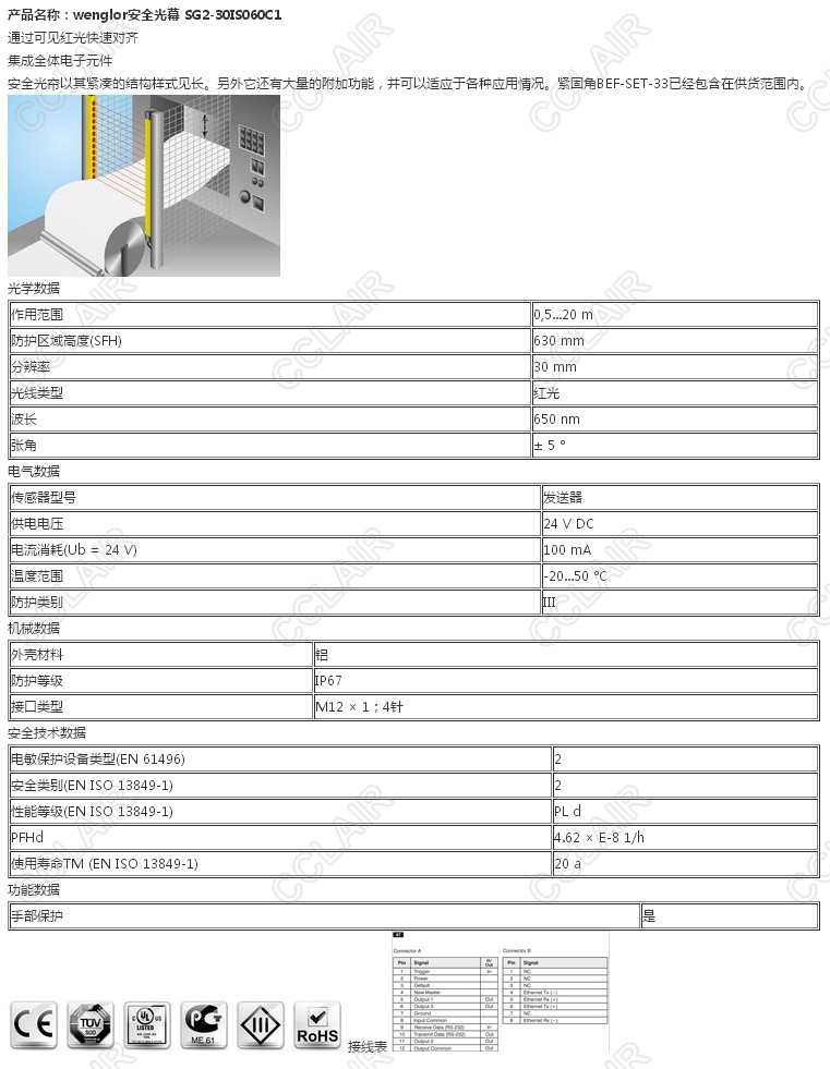 SG2-30IS060C1,wenglor安全光幕