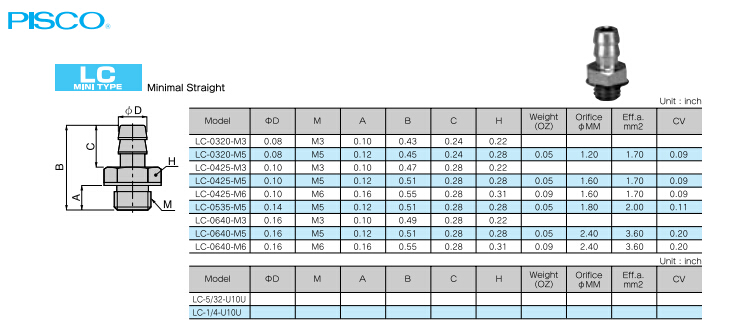 LC-0320-M3,LC-0425-M6,LC-5/32-U10U,LC-1/4-U10U,LC-0640-M6,LC-0535-M5,PISCO特殊接頭