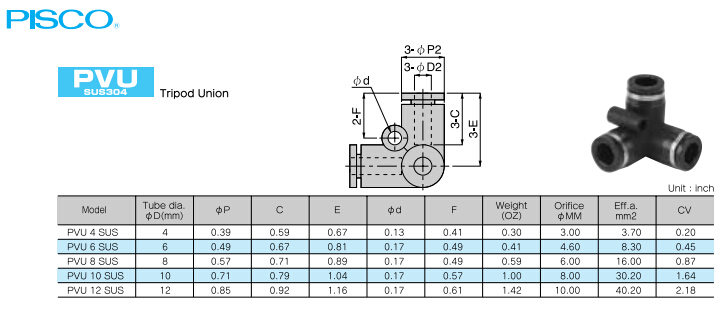 PVU4SUS,PVU6SUS,PVU8SUS,PVU10SUS,PVU12SUS,PISCO快速接頭