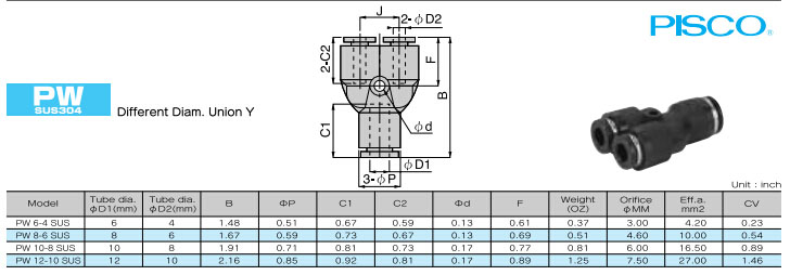 PW6-4SUS,PW8-6SUS,PW10-8SUS,PW12-10SUS,PISCO快速接頭