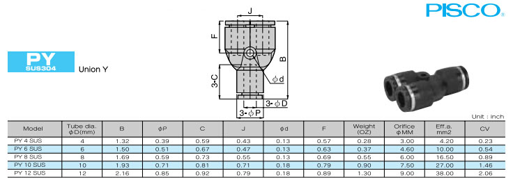 PY4SUS,PY6SUS,PY8SUS,PY10SUS,PY12SUS,PISCO快速接頭