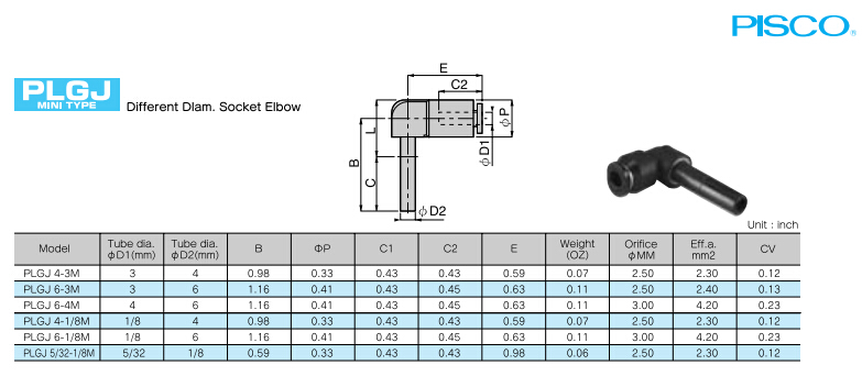 PLGJ4-3M,PLGJ6-3M,PLGJ6-4M,PLGJ4-1/8M,PLGJ6-1/8M,PLGJ5/32-1/8M,PISCO快速接頭 |