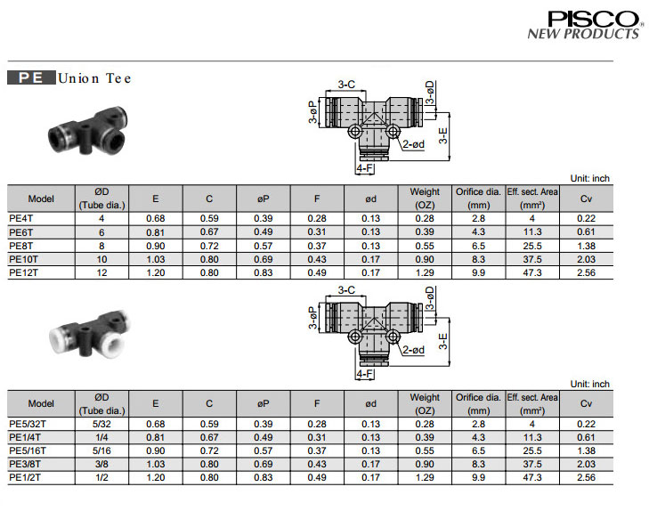 PE4T,PE6T,PE8T,PE10T,PE12T,PE5/32T,PE1/4T,PE5/16T,PE3/8T,PE1/2T,PISCO快速接頭