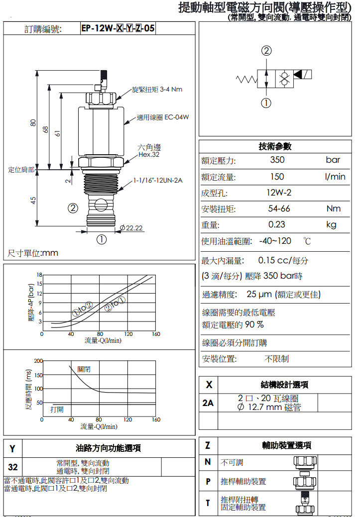 EP-12W-2A-32-N-05,EP-12W-2A-32-P-05,EP-12W-2A-32-T-05,winner提動軸型電磁方向閥 |