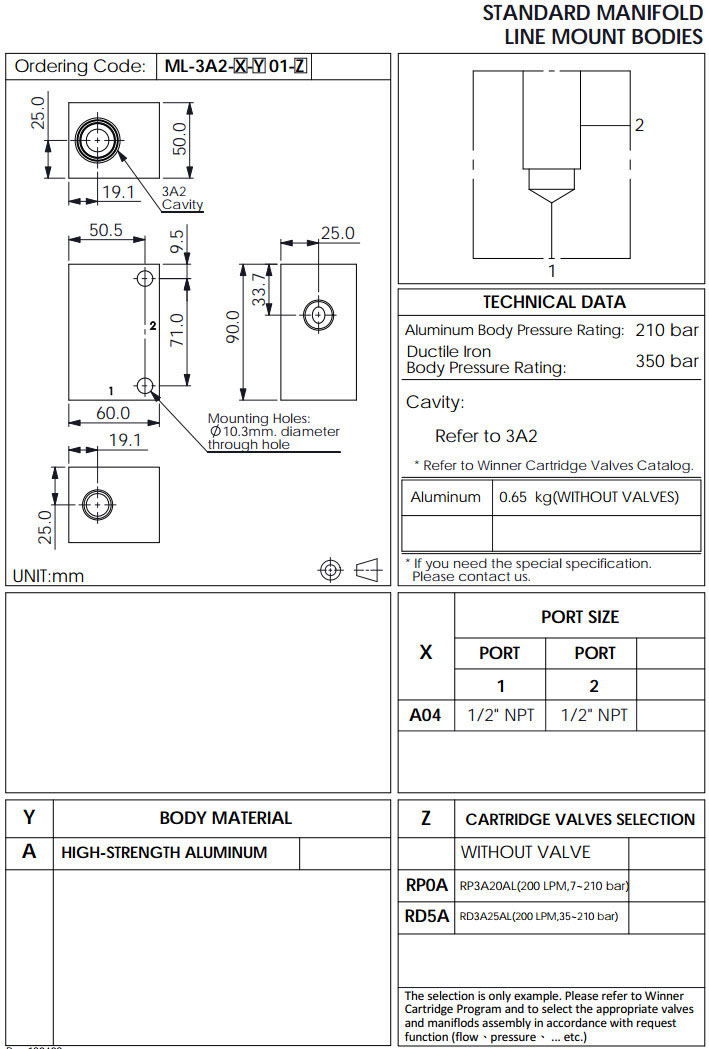 ML-3A2-A04-A01-RP0A,ML-3A2-A04-A01-RD5A,winner標準配管式油路板