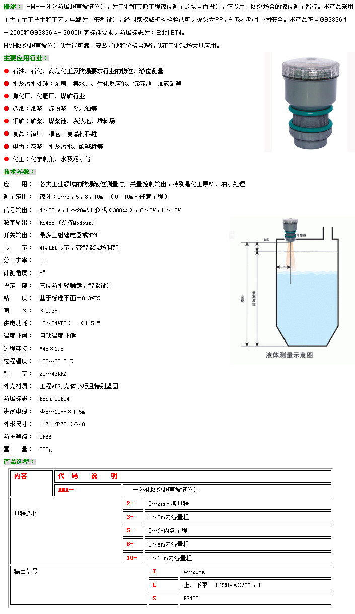 HMH-2,HMH-3,HMH-5,HMH-8,HMH-10,HMH,防爆超聲波液位計