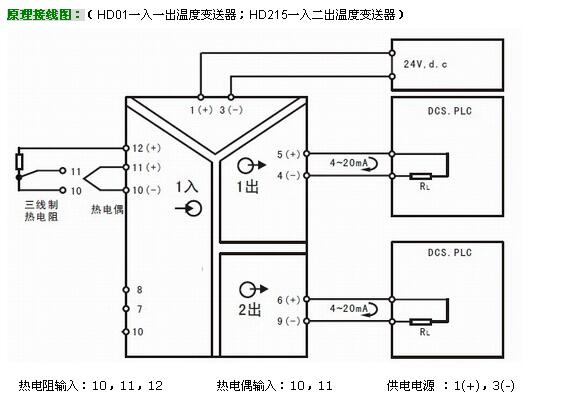 概述:HD01 熱電阻/熱電偶變送器是一種先進的數(shù)字化技術(shù)智能溫度變送器,又稱導(dǎo)軌式溫度變送器、熱電阻變送器,熱電偶變送器。它將熱電阻/熱電偶信號(如Pt100,Cu50,K,J,T,E,S、B、R、N、W型等溫度信號),隔離放大轉(zhuǎn)換成與溫度成正比的標(biāo)準(zhǔn)信號輸出,如:0-10V,4-20mA。輸入/輸出/電源/通道間多方全隔離,具有超強抗電磁干擾能力,精度高,遠傳不受其它設(shè)備影響,導(dǎo)軌式安裝便于檢測 與維護。廣泛用于各種對溫度進行測量的監(jiān)控系統(tǒng)中,輸出信號可接數(shù)顯表、PLC、變頻器等設(shè)備,并對終端接收設(shè)備起保護作用。