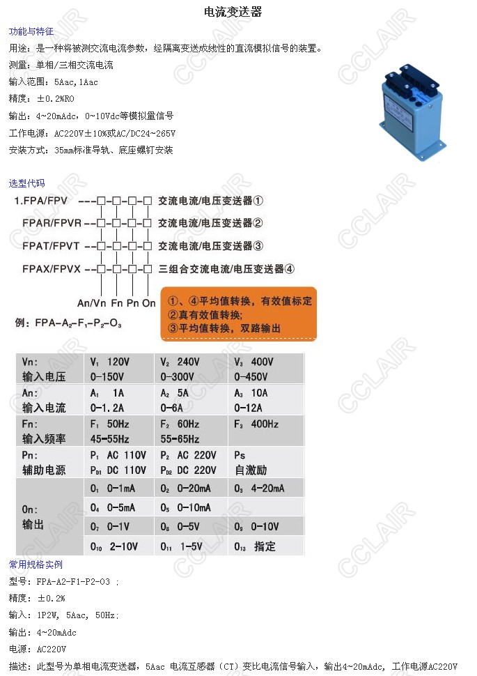 FPA-A1-F1-P1-O1,FPA-A2-F1-P2-O3,FPA-A1-F3-P2-O2,FPA-A3-F3-PS-O13,FPA,電流變送器