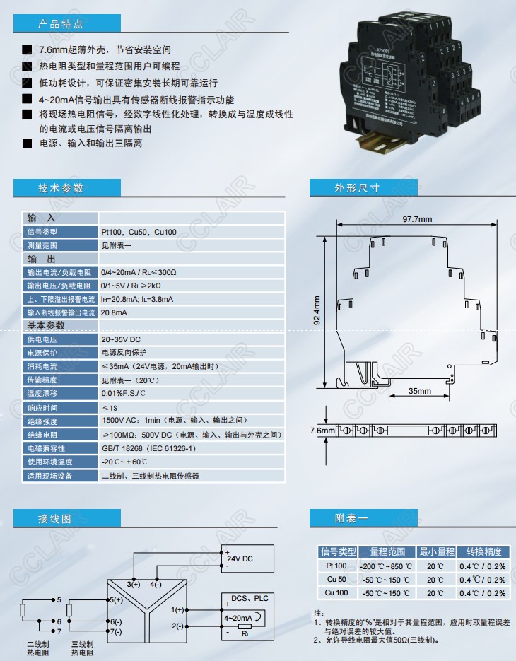 XP5081,超薄型熱電阻變送器