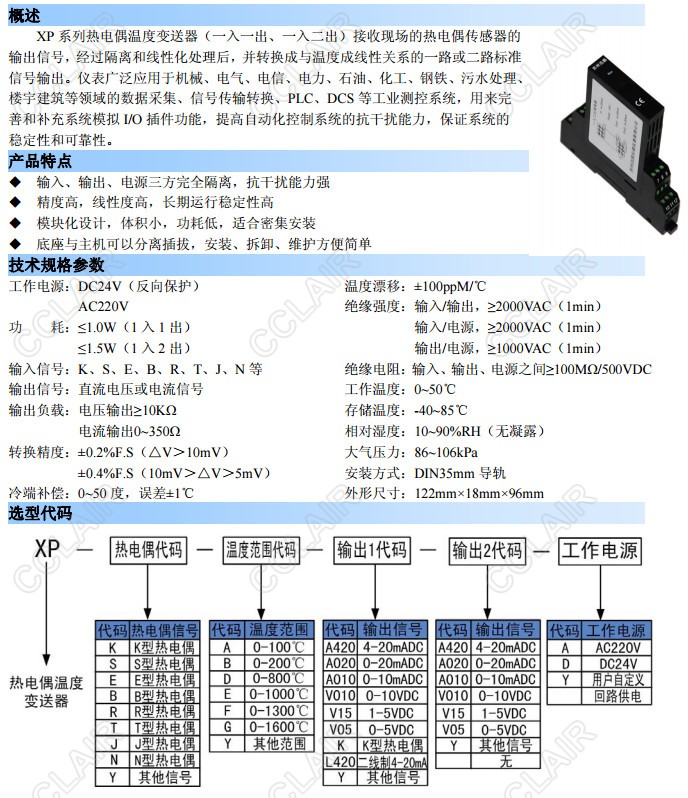 XP-K-D-V05-D,XP-K-D-A420-D,XP-S-F-A420-A420-D,XP-E-Y-L420,XP,熱電偶溫度變送器