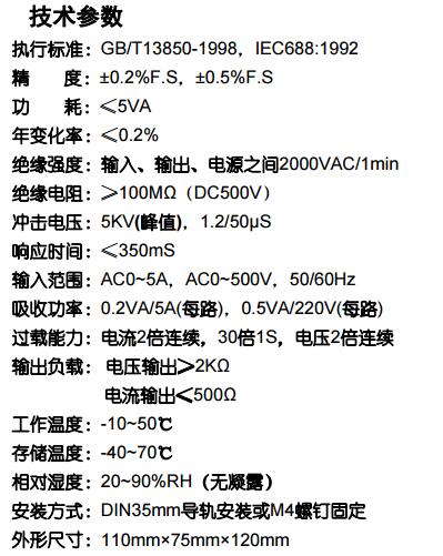 描述: 此型號為三相三線功率因數(shù)變送器,5Aac 電流互感器(CT)變比電流信號,100Vac電壓互感器(PT)變比電壓信號輸入,輸出4~12~20mAdc,對應(yīng)功率因數(shù)值-0.5C~1~0.5L,工作電源AC220V。