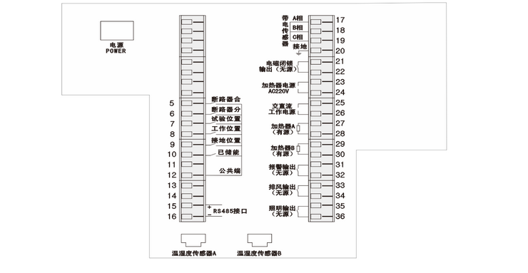 該產(chǎn)品功能強大,有帶電顯示,溫濕度數(shù)字顯示,三相觸頭溫度值顯示,自動加熱除濕控制,斷路器分合閘狀態(tài)指示,儲能、接地開關(guān)指示,手車位置指示,一次回路模擬圖,二次回路電壓數(shù)值顯示,人體感應柜內(nèi)照明,智能語音防誤提示,語音帶電提示,分合閘回路指示,電壓、電流、有功功率、無功功率、功率因數(shù)、頻率測量以及RS485通訊接口等功能。