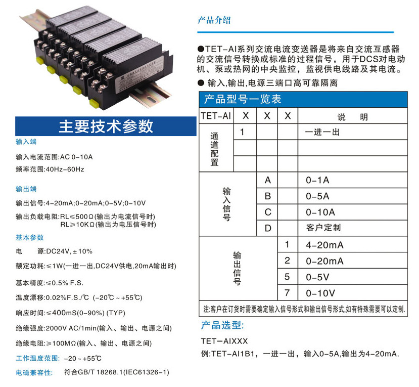 TET-AI1A1,TET-AI1A2,TET-AI1B2,TET-AI1C5,TET-AI1B7,TET-AI1D7,TET-AI,交流電流變送器