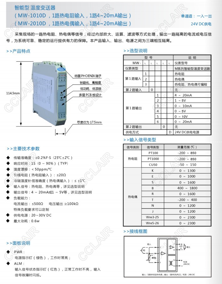 MW-1020D,MW-1040D,MW-2020D,MW-2060D,MW-3050D,MW-2010D,MW-3010D,MW-1010D,溫度變送器