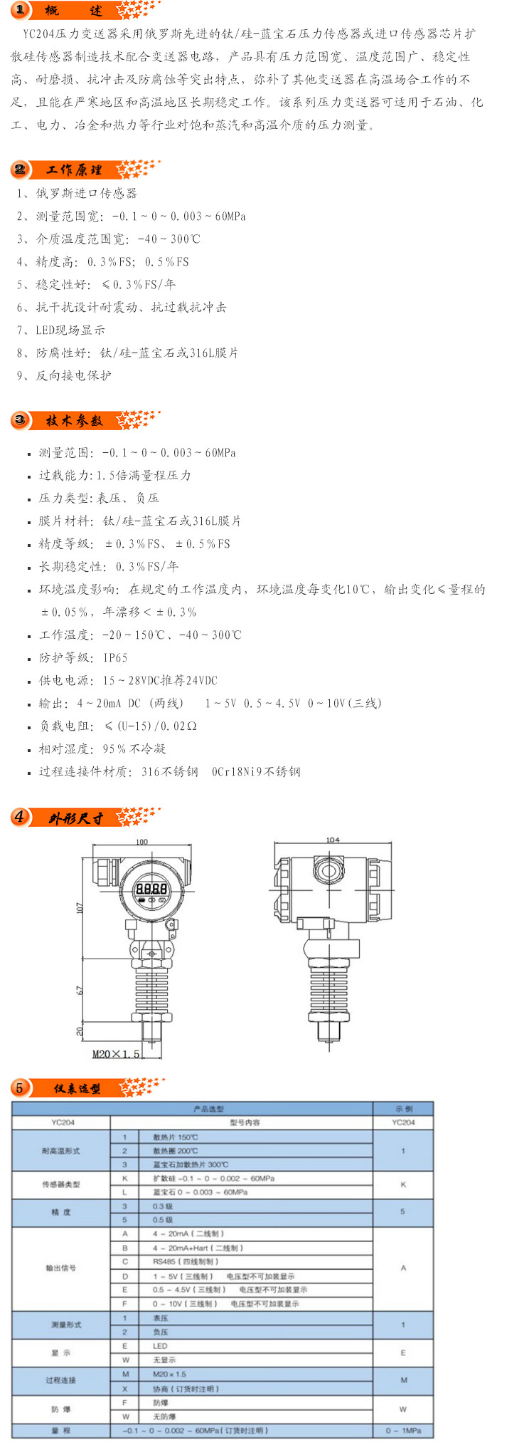 YC2041,YC2042,YC2043,YC204,壓力變送器