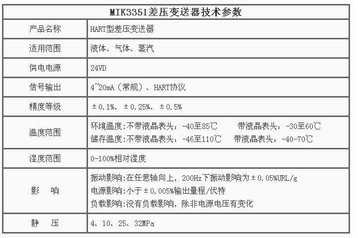 MIK3351差壓變送器是引進國外先進技術和設備,關鍵原材料、元器件和零部件均采用進口。整機經過嚴格組裝和調試,具有設計原理先進、品種規(guī)格齊全、安裝使用簡單等特