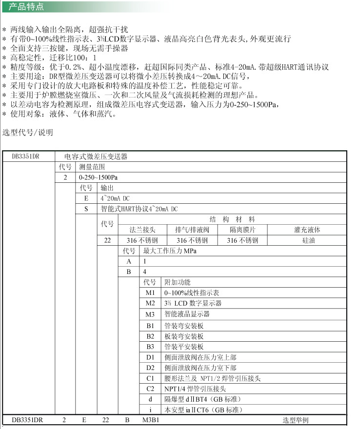 DB3351DR-2,DB3351DR-2E,DB3351DR-2S,DB3351DR,電容式微差壓變送器