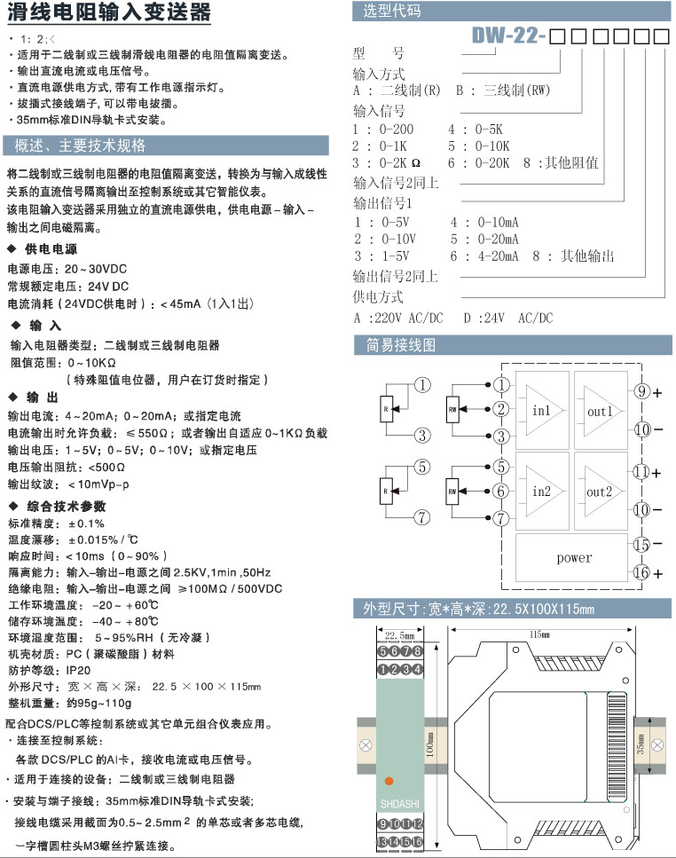 DW-22-A1,DW-22-A2,DW-22-A3,DW-22-B4,DW-22-B5,DW-22-B6,DW-22-B8,DW-22,滑線電阻隔離變送器