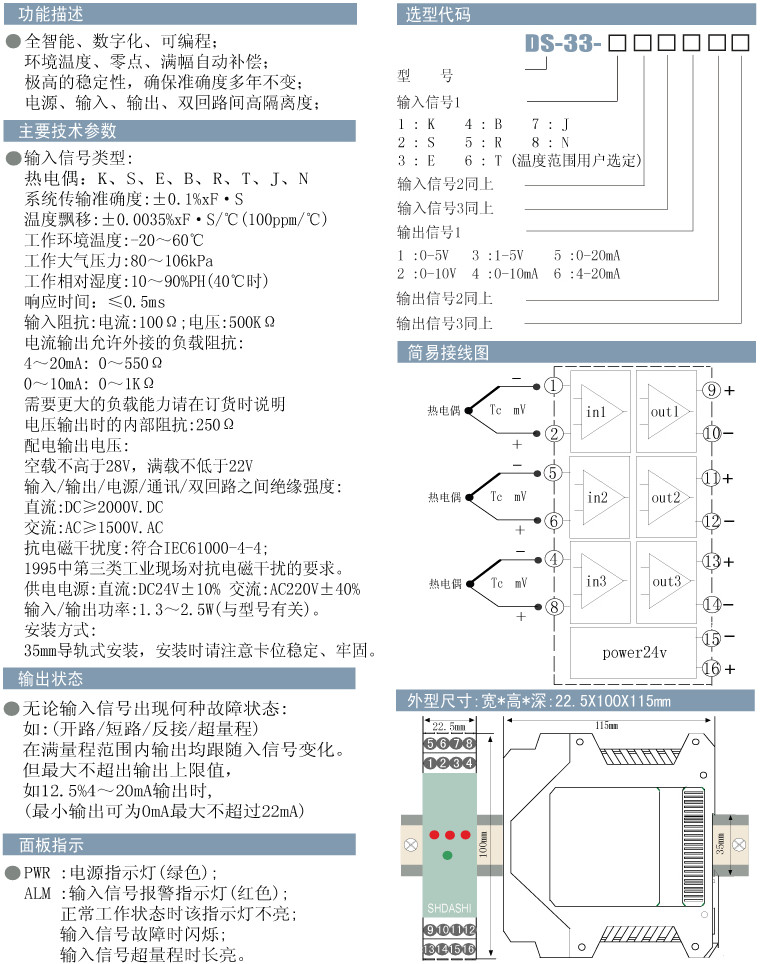 DS-33-1,DS-33-2,DS-33-3,DS-33-4,DS-33-5,DS-33-6,DS-33-7,DS-33-8,DS-33,熱電偶信號變送器