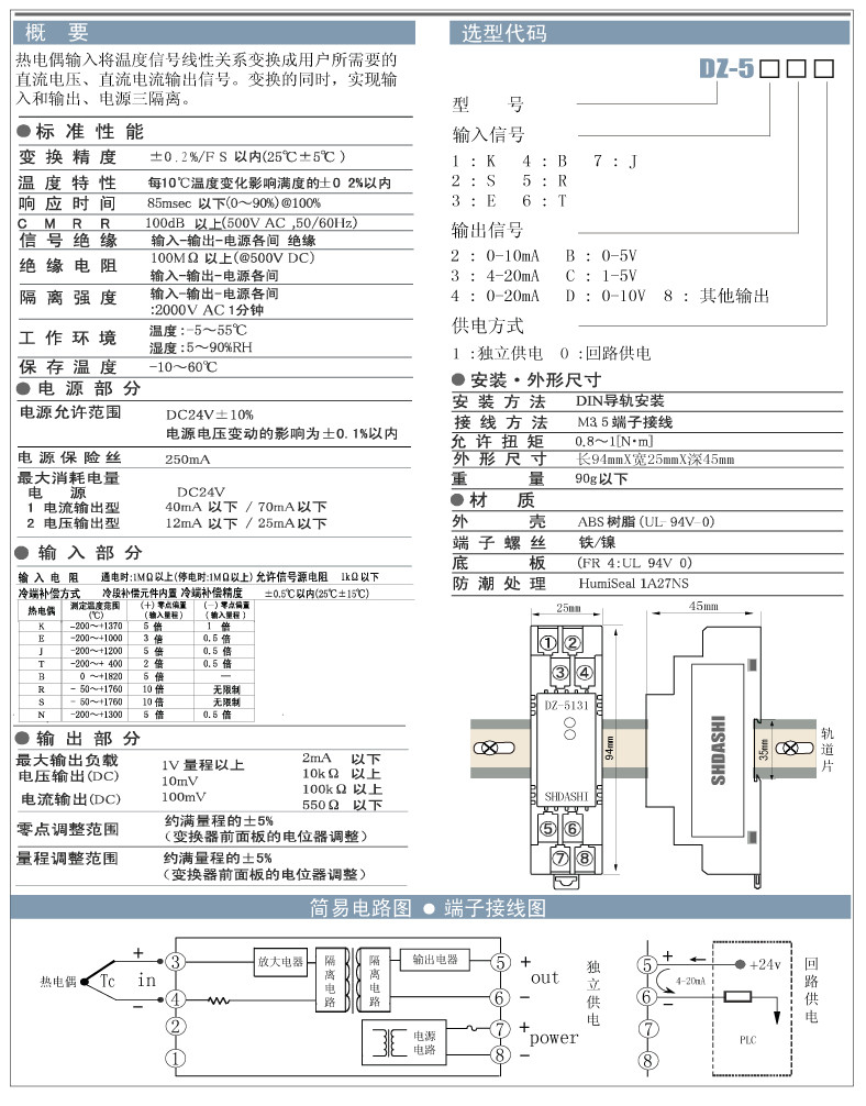 DZ-512,DZ-523,DZ-534,DZ-542,DZ-54B,DZ-54C,DZ-55D,DZ-578,DZ-5,熱電偶信號變送器