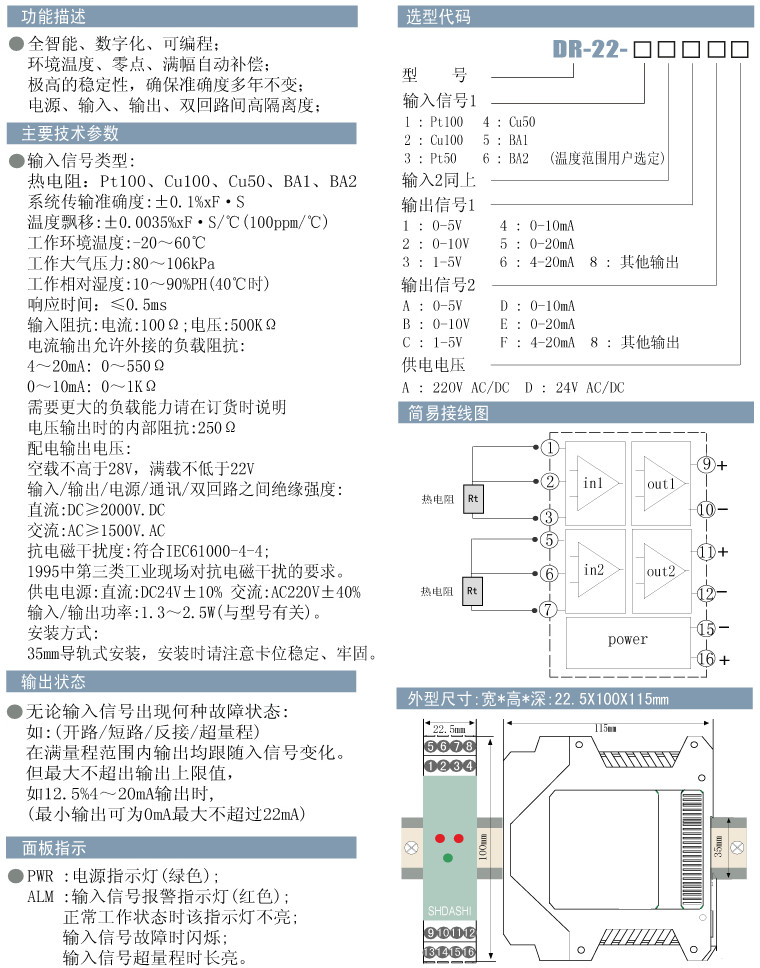 DR-22-1,DR-22-2,DR-22-3,DR-22-4,DR-22-5,DR-22-6,DR-22,熱電阻溫度變送器