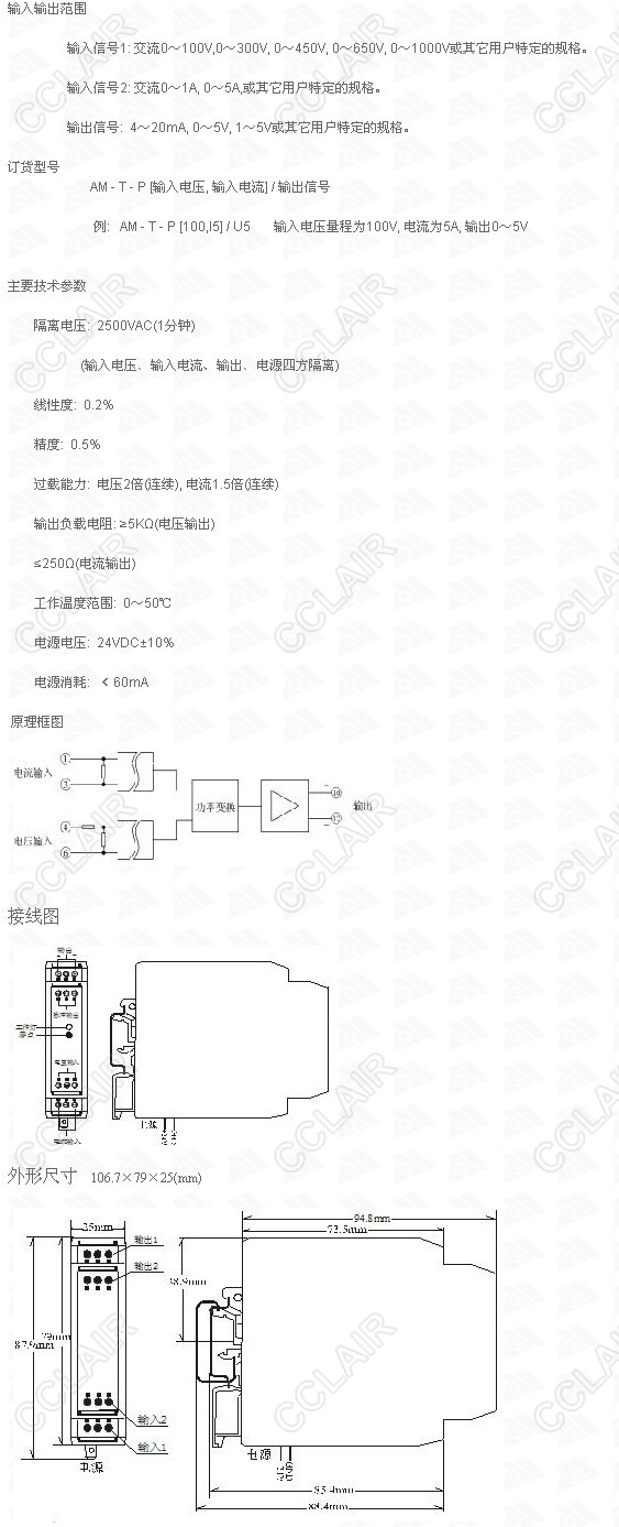 AM-T-P100.I5/U5,單相有功功率變送器