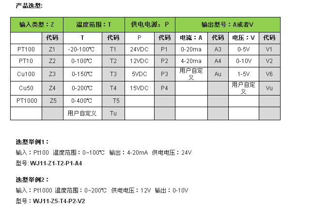 WJ11-Z1-T2-P1-A4,WJ11-Z5-T4-P2-V2,鉑熱電阻溫度信號變送器.