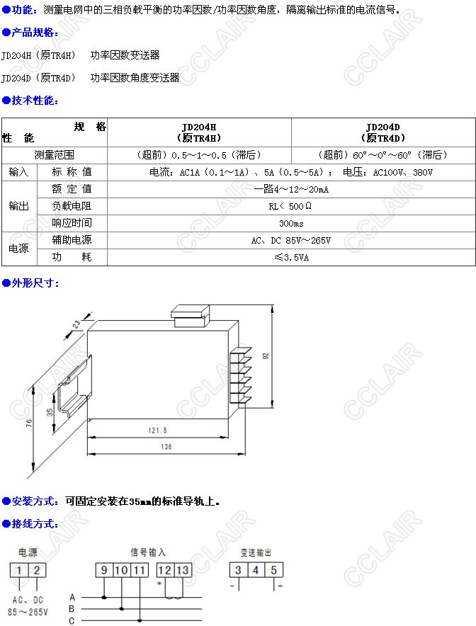 JD204H,JD204D,功率因素/角度變送器