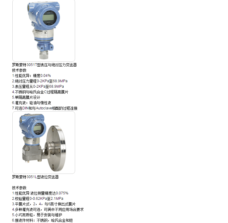 羅斯蒙特3051 壓力變送器