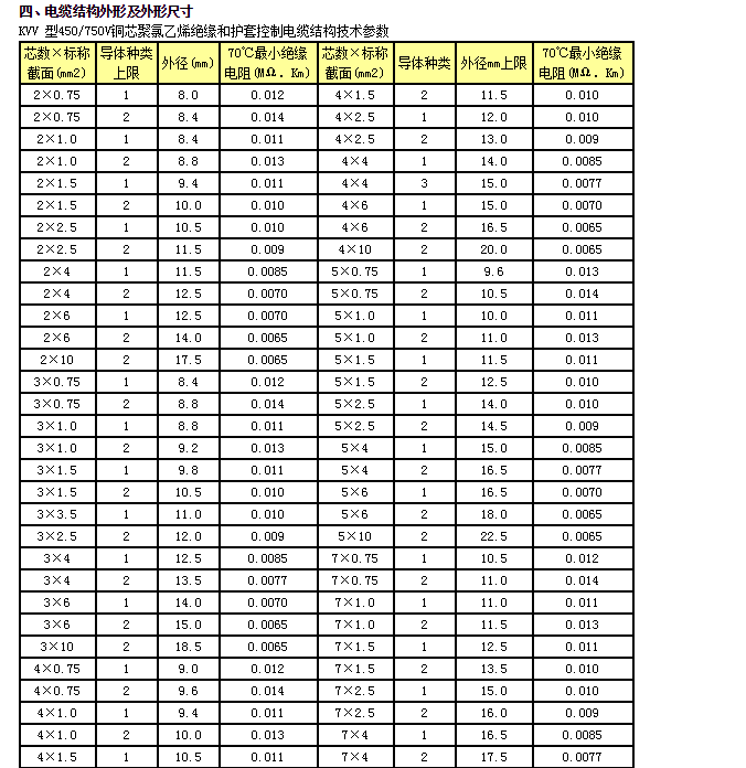 注:用戶需要阻然型產(chǎn)品,上述型號(hào)均可生產(chǎn)供貨,只要在訂貨合同或協(xié)議中說(shuō)明即可,型號(hào)前加寫“ZR”,即ZR-KVV型……等。