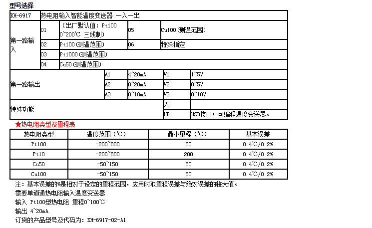 測(cè)量范圍: 見(jiàn)選型訂貨欄目中的“熱電阻分度號(hào)及量程表”