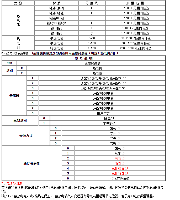 Cu100(三線制、四線制)。智能型溫度變送器的輸入信號(hào)可通過(guò)手持器和PC機(jī)任意設(shè)置;