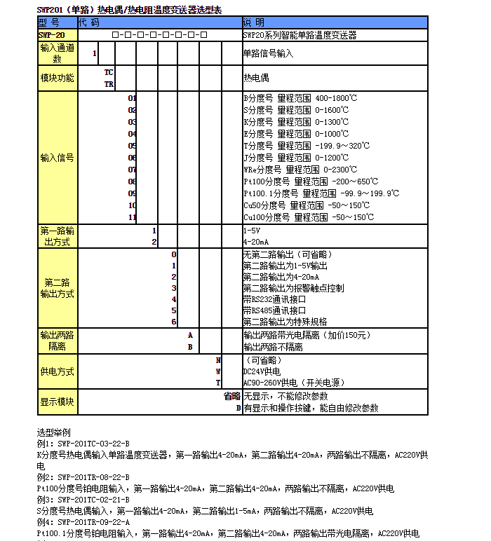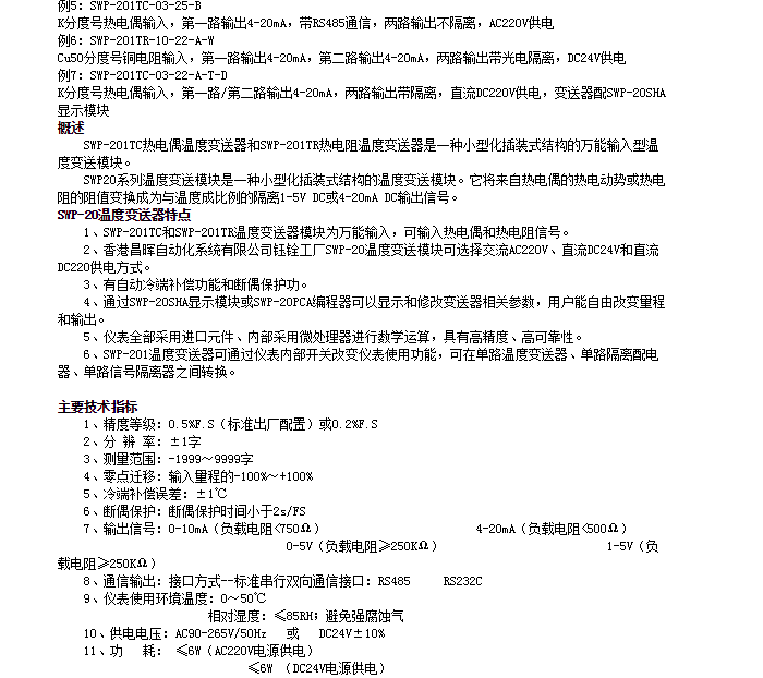 SWP-201TC-03-22-B,SWP-201TR-08-22-B,SWP-201TC-02-21-B,熱電偶/熱電阻溫度變送器SWP-201TR-09-22-A,SWP-201TC-03-25-B,SWP-201TR-10-22-A-W,SWP-201TC-03-22-A-T-D,