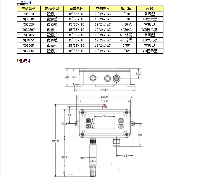 濕度電壓輸出:0~10VDC、4~20mA、0~5V、RS485