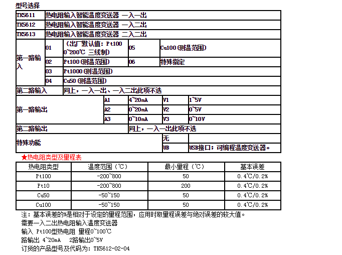 測(cè)量范圍: 見(jiàn)選型訂貨欄目中的“熱電阻分度號(hào)及量程表”