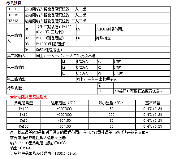 測量范圍: 見選型訂貨欄目中的“熱電阻分度號及量程表”