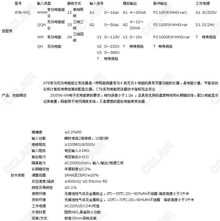 ATB-WQWWH,ATB-WQQQH,ATB-WQWH,ATB-WQQH,有功無功功率組合變送器
