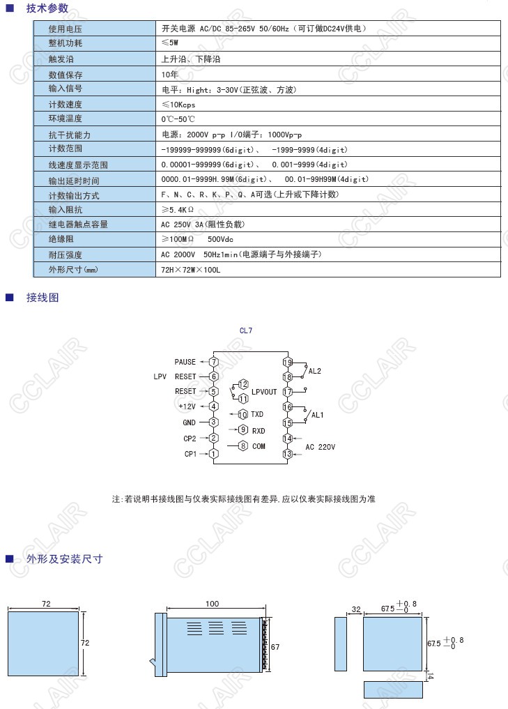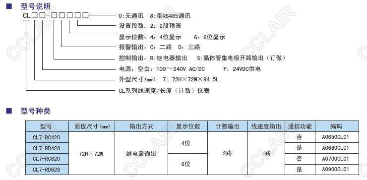 CL7-RC420,CL7-RD428,CL7-RC620,CL7-RD628,CL7線速度/長度計數(shù)雙功能儀表