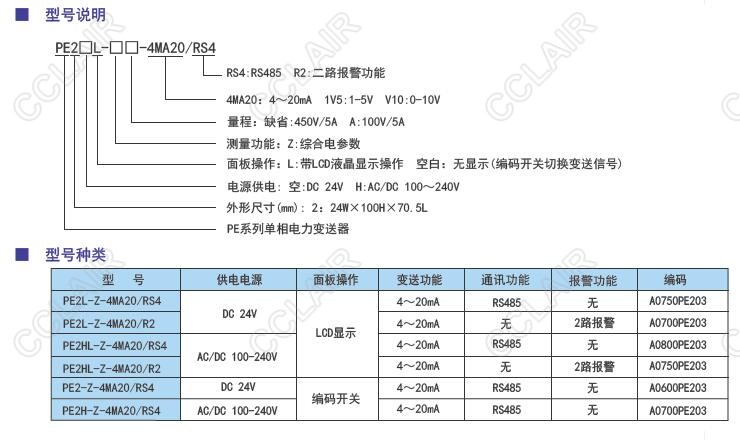 PE2L-Z-4NA20/RS4,PE2L-Z-4MA20/R2,PE2HL-Z-4MA20/RS4,PE2HL-Z-4MA20-R2,PE2-Z-4MA20/RS4,PE2H-Z-4MA20/RS4,PE單相電量變送器