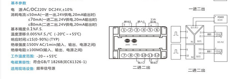 GE703-F頻率變送器工作電源:AC/DC85-265V(默認)
