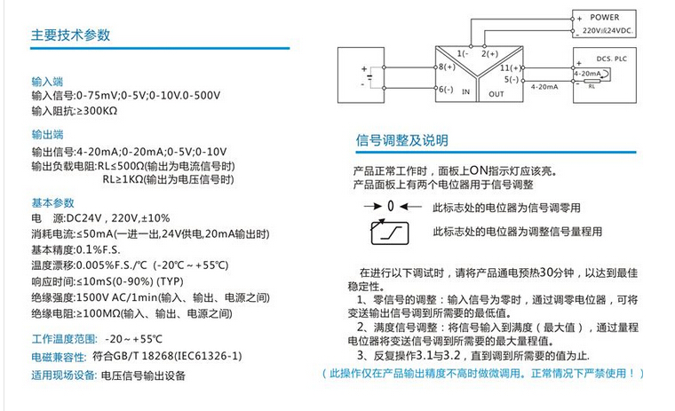 直流電壓變送器輸入范圍:DC0-10V、DC0-100V、300V,DC0-500V等用戶特定規(guī)格