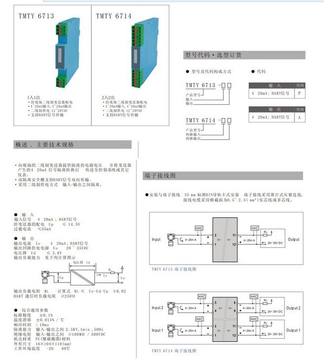 TMTY6713,TMTY6714 ,TMTY6713-PA,TMTY6714-PA,變送器電流輸入,二線制隔離配電器