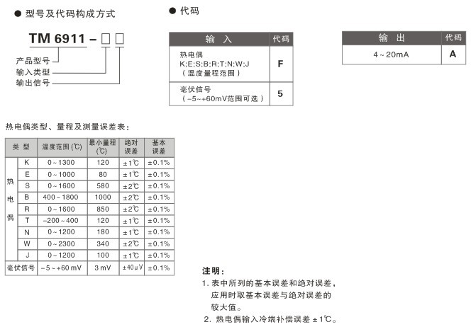 TM6911,TM6911-FA,TM6911-5A,熱電偶輸入溫度變送器 一入一出