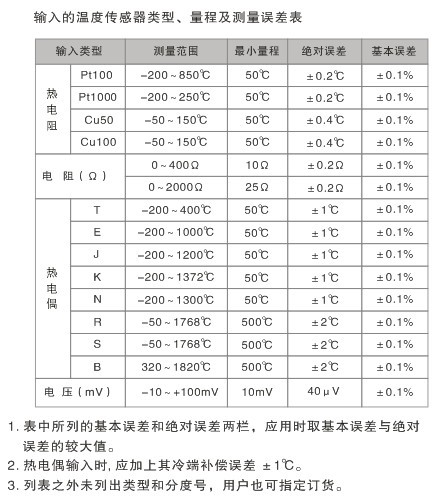 標(biāo)準(zhǔn)精度:±0.1%(參見(jiàn)溫度傳感器類型、量程及測(cè)量誤差表)