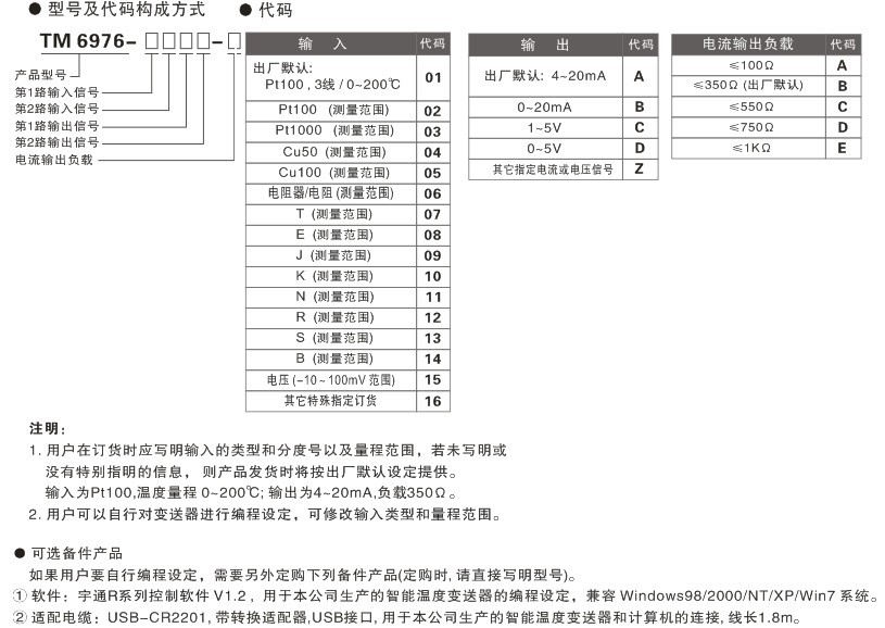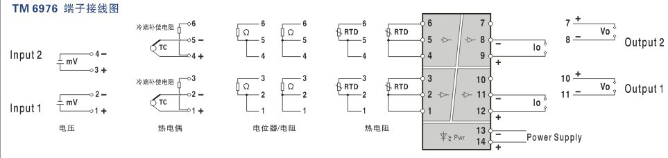 TM6976 熱電阻/熱電偶通用輸入,智能溫度變送器 二入二出特性