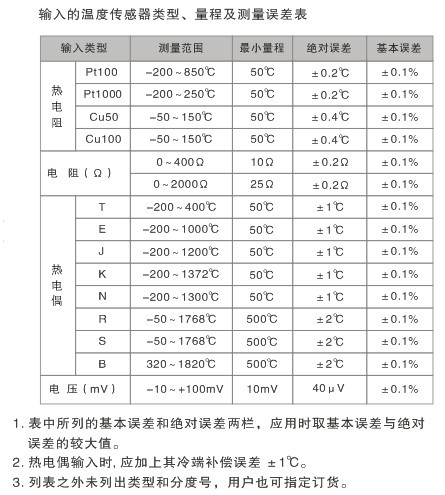 標(biāo)準(zhǔn)精度:±0.1%(參見(jiàn)溫度傳感器類型、量程及測(cè)量誤差表)