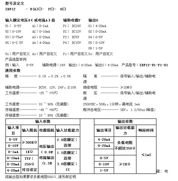 輸出標(biāo)準(zhǔn)信號(hào):0-5V/0-10V/1-5V,0-10mA/0-20mA/4-20mA等,具有高負(fù)載能力。